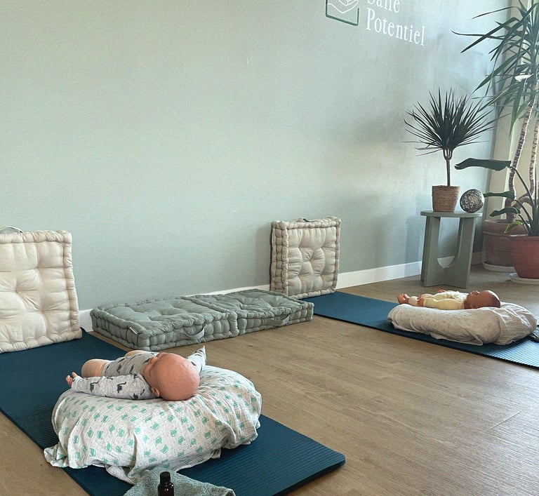 C’est une situation très fréquente, et tout à fait normale. L’atelier est pensé pour s’adapter au rythme du bébé. Vous pourrez observer, reproduire les gestes sur un poupon d’apprentissage, puis refaire le massage tranquillement à la maison. Vous repartirez aussi avec un livret pratique qui vous guidera pas à pas.
